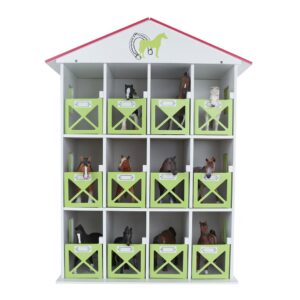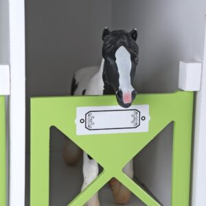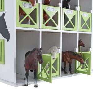 Denne smukke hestestald i træ, også kendt som et hestehotel, er det perfekte sted til alle dine legetøjsheste. Med hele 12 rummelige hestebokse tilbyder stalden rigelig plads til alle dine heste. Den er fremstillet af træ af høj kvalitet og designet med omhyggelig sans for detaljer, og er en realistisk og stilfuld tilføjelse til ethvert værelse.
